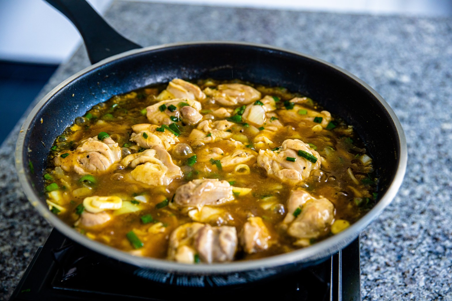 - Ca 600g Hähnchenschenkel, entbeint, große Stücke geschnitten